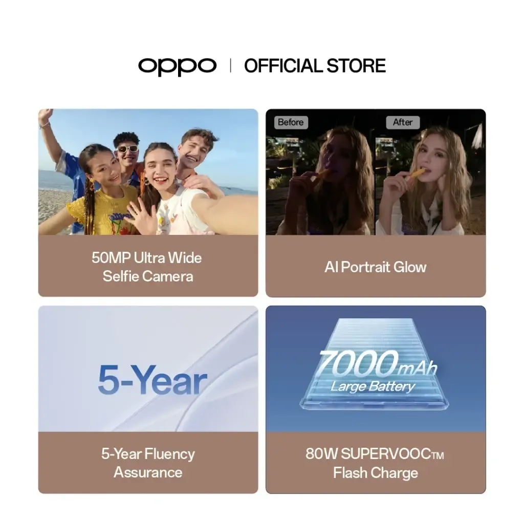 Oppo Reno15 F 5G (8GB Ram+256GB Rom) (12GB Ram+256GB Rom) (Original Malaysia Set) With Premium Gift