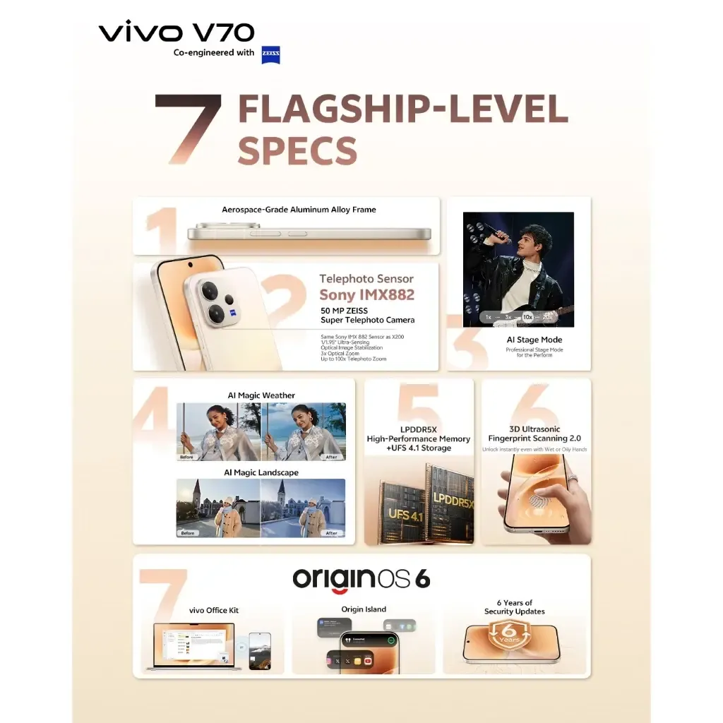 vivo V70 5G (8GB+8GB Ram+256GB Rom) (12GB+12GB Ram+256GB/512GB Rom) (Original Malaysia Set) With Premium Gift