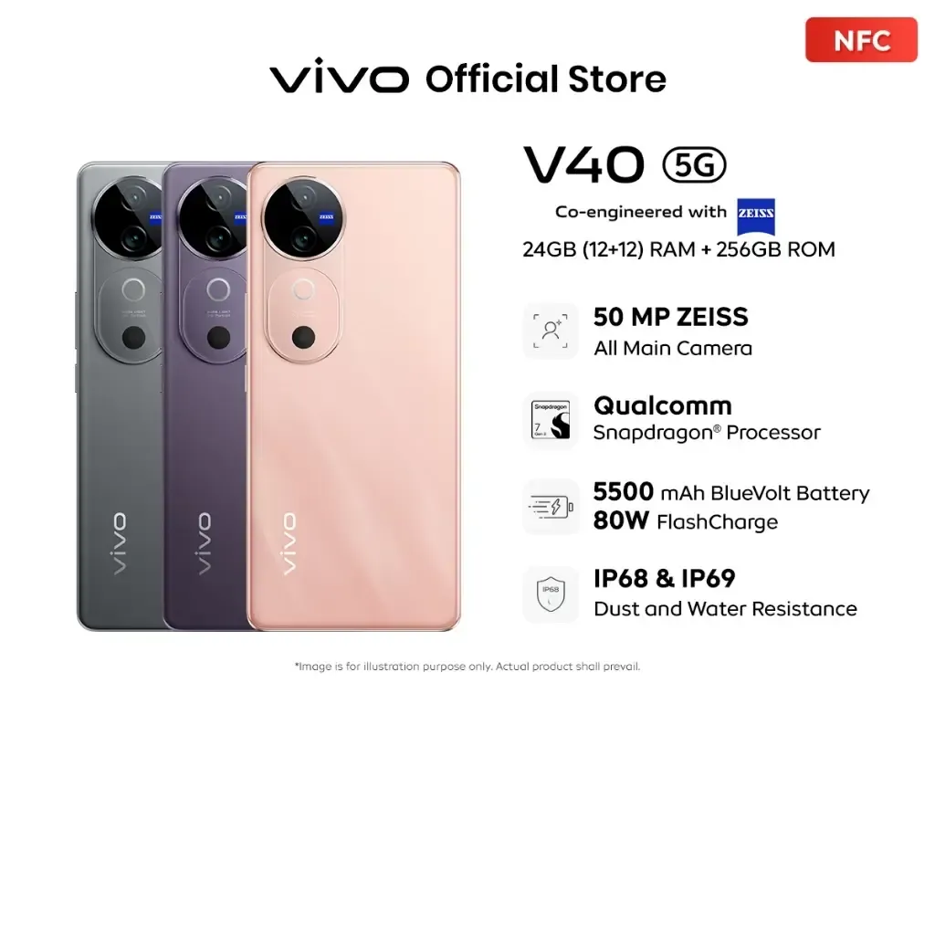 vivo V40 5G (12GB+12GB Extended Ram+256GB Rom) (Original Malaysia Set) With Premium Gift