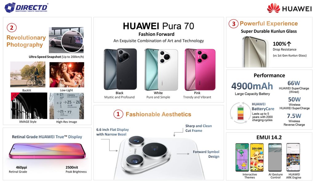 Huawei Pura 70 12GB Ram+256GB Rom (Original Malaysia Set) With Premium Gift