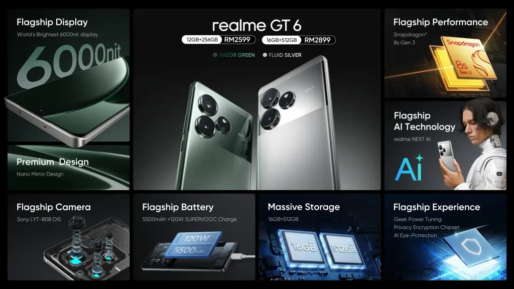 realme GT 6 5G (16GB+12GB Extended Ram+512GB Rom) (Original Malaysia Set) With Premium Gift