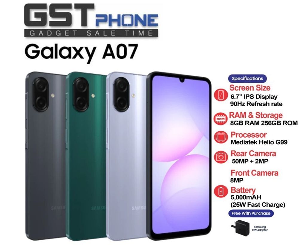 Samsung Galaxy A07 (4G) (5G) (8GB+8GB Extended Ram+256GB Rom) (Original Malaysia Set) With Premium Gift