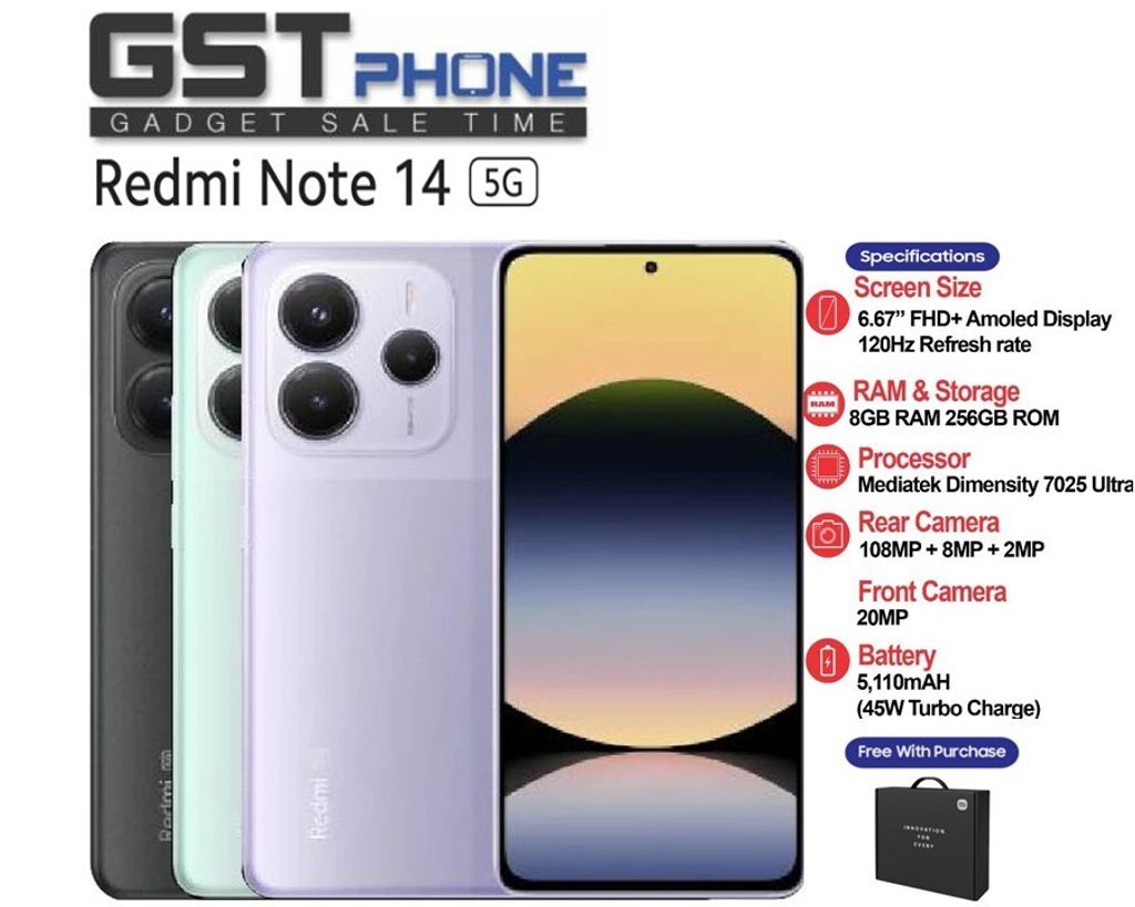 Xiaomi Redmi Note 14 (4G) (5G) (8GB+8GB Extended Ram+256GB Rom) (Original Malaysia Set) With Premium Gift